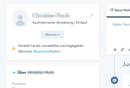 In manchen Fällen wissen Sie aber, dass es sich dennoch um eine legitime E-Mail-Adresse handelt, obwohl der Versand zu einem Hard Bounce geführt hat. Daher möchten Sie die E-Mail erneut senden. In der Vergangenheit mussten Sie sich dann direkt an HubSpot wenden, so dass sich das (zweifelsohne großartige) Supportteam darum kümmerte. Von jetzt an können Sie den Bounce selber aufheben.