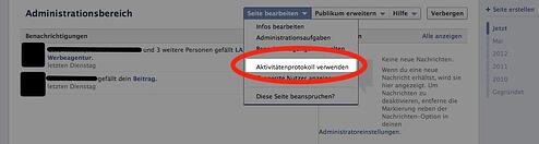 Das Aktivitätenprotokoll erreicht man über den Button “Seite bearbeiten” im Administrationsbereich.